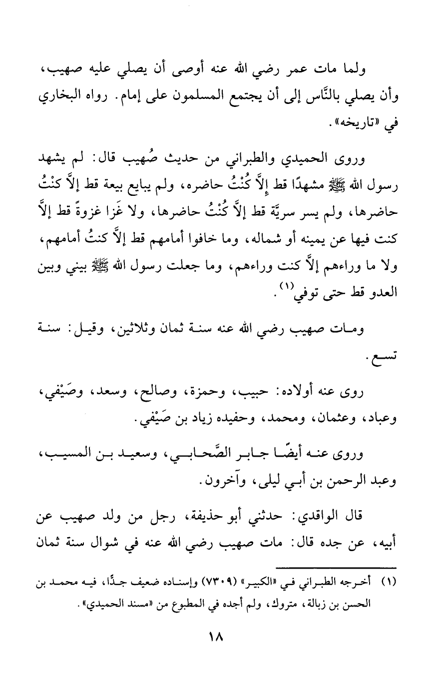 ومات صهيب رضي الله عنه سنة ثمان وثلاثين، وقيل: سنة تسع.