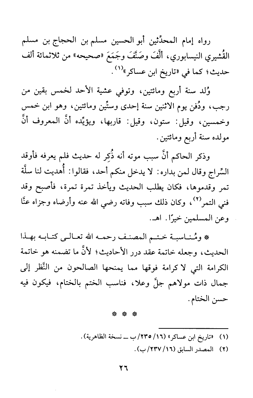 رواه إمام المحدِّثين أبو الحسين مسلم بن الحجاج بن مسلم القُشيري النيسابوري، ألَّفَ وصَنَّفَ وجَمَعَ "صحيحه" من ثلاثمائة ألف حديث؛ كما في "تاريخ ابن عساكر" (¬1).