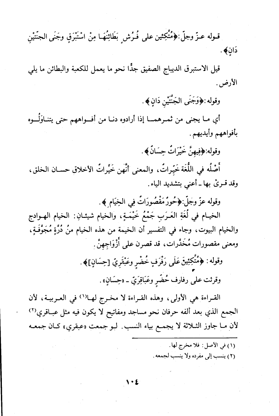 قوله عزَّ وجلَّ: (مُتَّكِئِينَ عَلَى فُرُشٍ بَطَائِنُهَا مِنْ إِسْتَبْرَقٍ وَجَنَى الْجَنَّتَيْنِ دَانٍ (54)