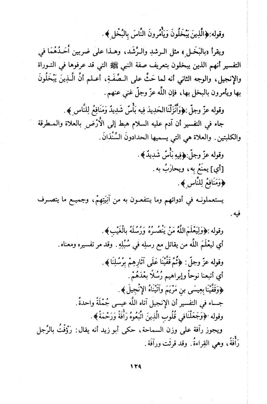 وقوله عزَّ وجلَّ: (وَأَنْزَلْنَا الْحَدِيدَ فِيهِ بَأْسٌ شَدِيدٌ وَمَنَافِعُ لِلنَّاسِ وَلِيَعْلَمَ اللَّهُ مَنْ يَنْصُرُهُ وَرُسُلَهُ بِالْغَيْبِ إِنَّ اللَّهَ قَوِيٌّ عَزِيزٌ (25)