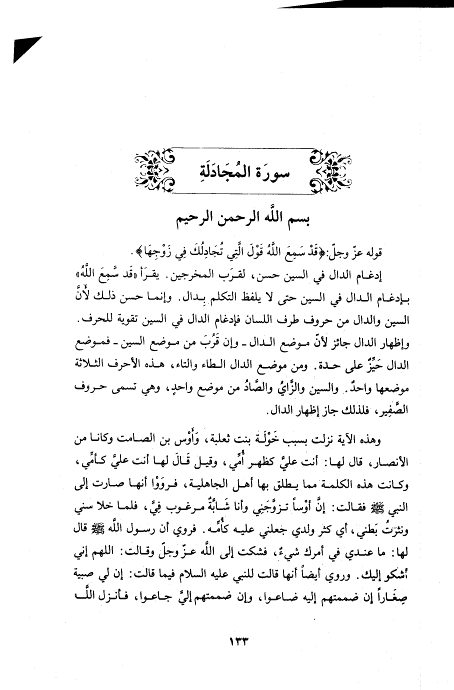 قوله عزَّ وجلَّ: (قَدْ سَمِعَ اللَّهُ قَوْلَ الَّتِي تُجَادِلُكَ فِي زَوْجِهَا وَتَشْتَكِي إِلَى اللَّهِ وَاللَّهُ يَسْمَعُ تَحَاوُرَكُمَا إِنَّ اللَّهَ سَمِيعٌ بَصِيرٌ (1)