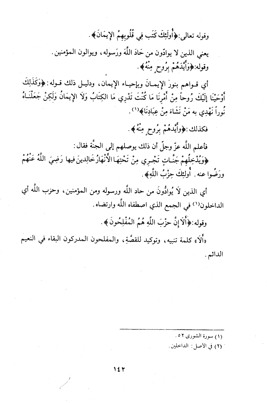 وقوله تعالى: (أُولَئِكَ كَتَبَ فِي قُلُوبِهِمُ الْإِيمَانَ).