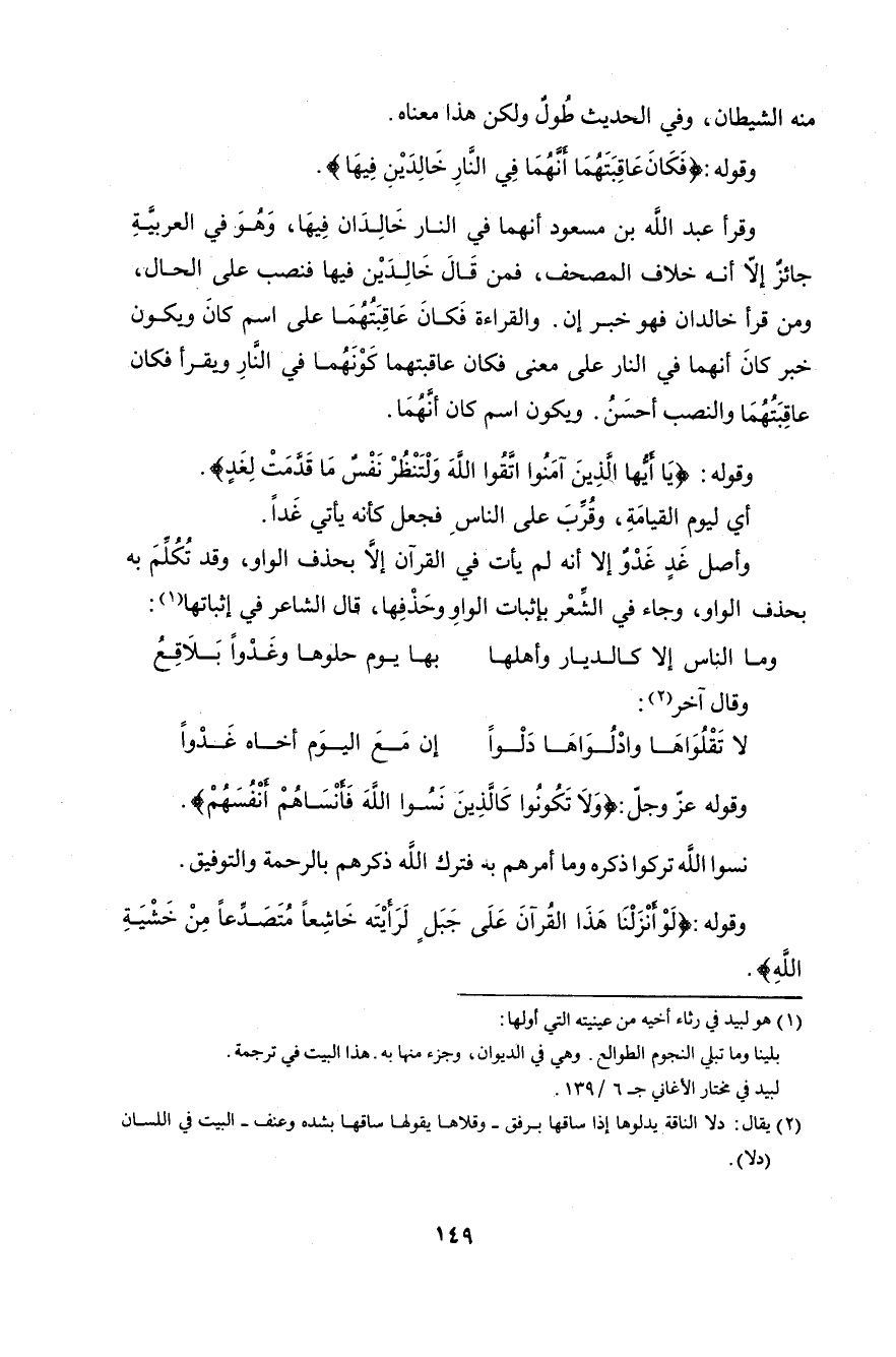 وقرأ عبد الله بن مسعود أنهما في النار خَالِدَان فِيهَا، وَهوَ في العربيةِ
