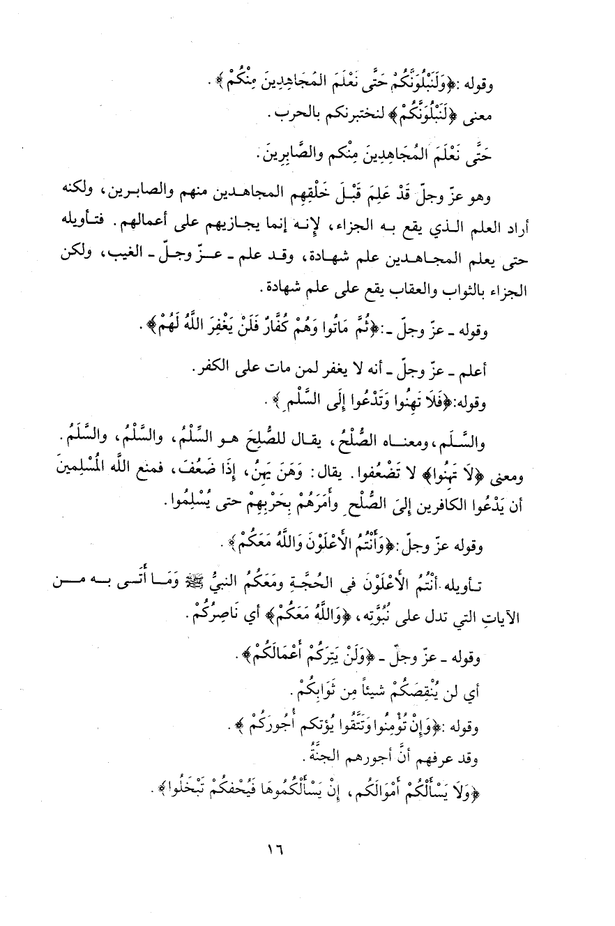 وقوله: (وَلَنَبْلُوَنَّكُمْ حَتَّى نَعْلَمَ الْمُجَاهِدِينَ مِنْكُمْ وَالصَّابِرِينَ وَنَبْلُوَ أَخْبَارَكُمْ (31)