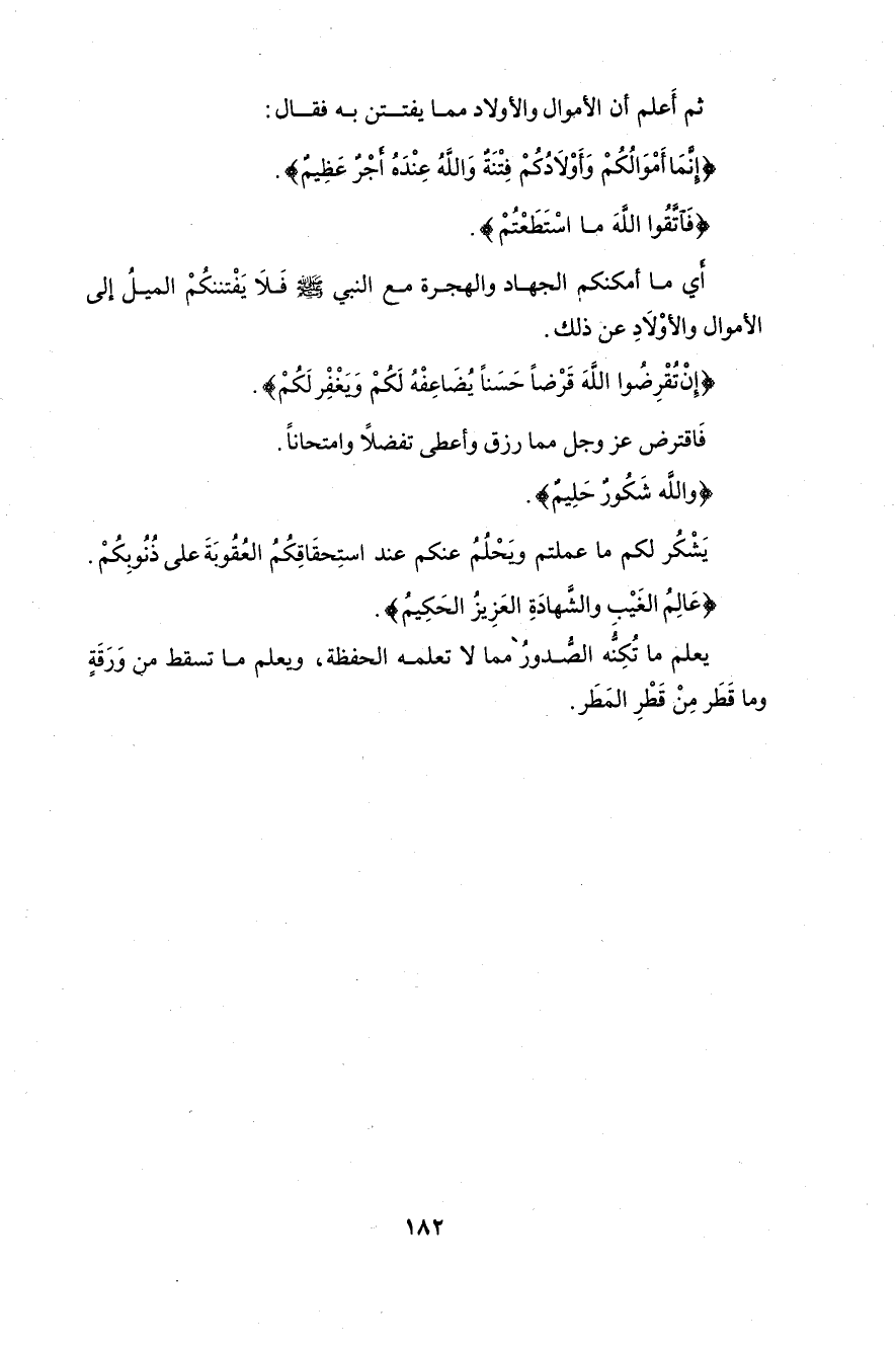 (إِنَّمَا أَمْوَالُكُمْ وَأَوْلَادُكُمْ فِتْنَةٌ وَاللَّهُ عِنْدَهُ أَجْرٌ عَظِيمٌ (15)
