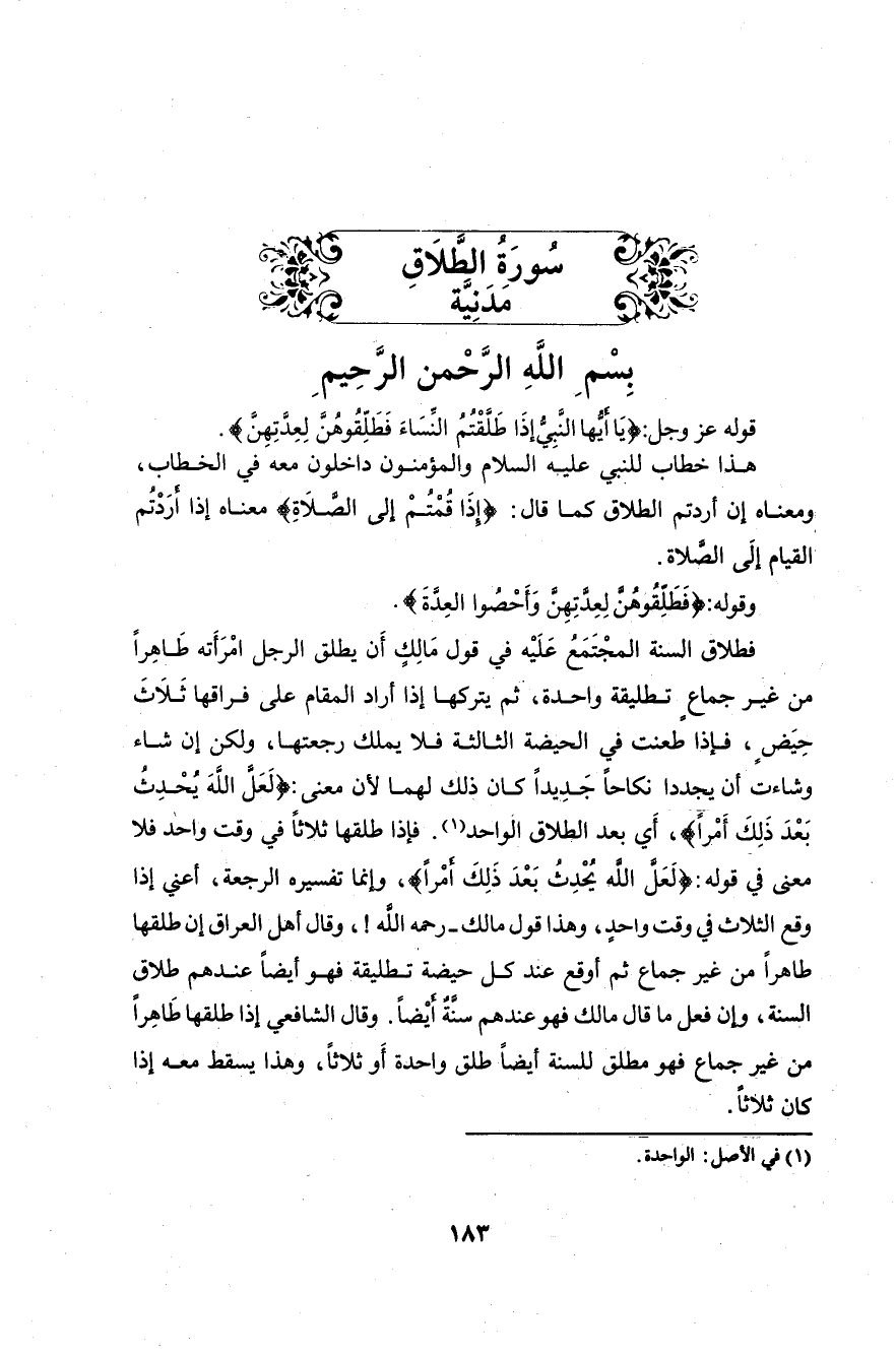 قوله عزَّ وجلَّ: (يَا أَيُّهَا النَّبِيُّ إِذَا طَلَّقْتُمُ النِّسَاءَ فَطَلِّقُوهُنَّ لِعِدَّتِهِنَّ وَأَحْصُوا الْعِدَّةَ وَاتَّقُوا اللَّهَ رَبَّكُمْ لَا تُخْرِجُوهُنَّ مِنْ بُيُوتِهِنَّ وَلَا يَخْرُجْنَ إِلَّا أَنْ يَأْتِينَ بِفَاحِشَةٍ مُبَيِّنَةٍ وَتِلْكَ حُدُودُ اللَّهِ وَمَنْ يَتَعَدَّ حُدُودَ اللَّهِ فَقَدْ ظَلَمَ نَفْسَهُ لَا تَدْرِي لَعَلَّ اللَّهَ يُحْدِثُ بَعْدَ ذَلِكَ أَمْرًا (1)