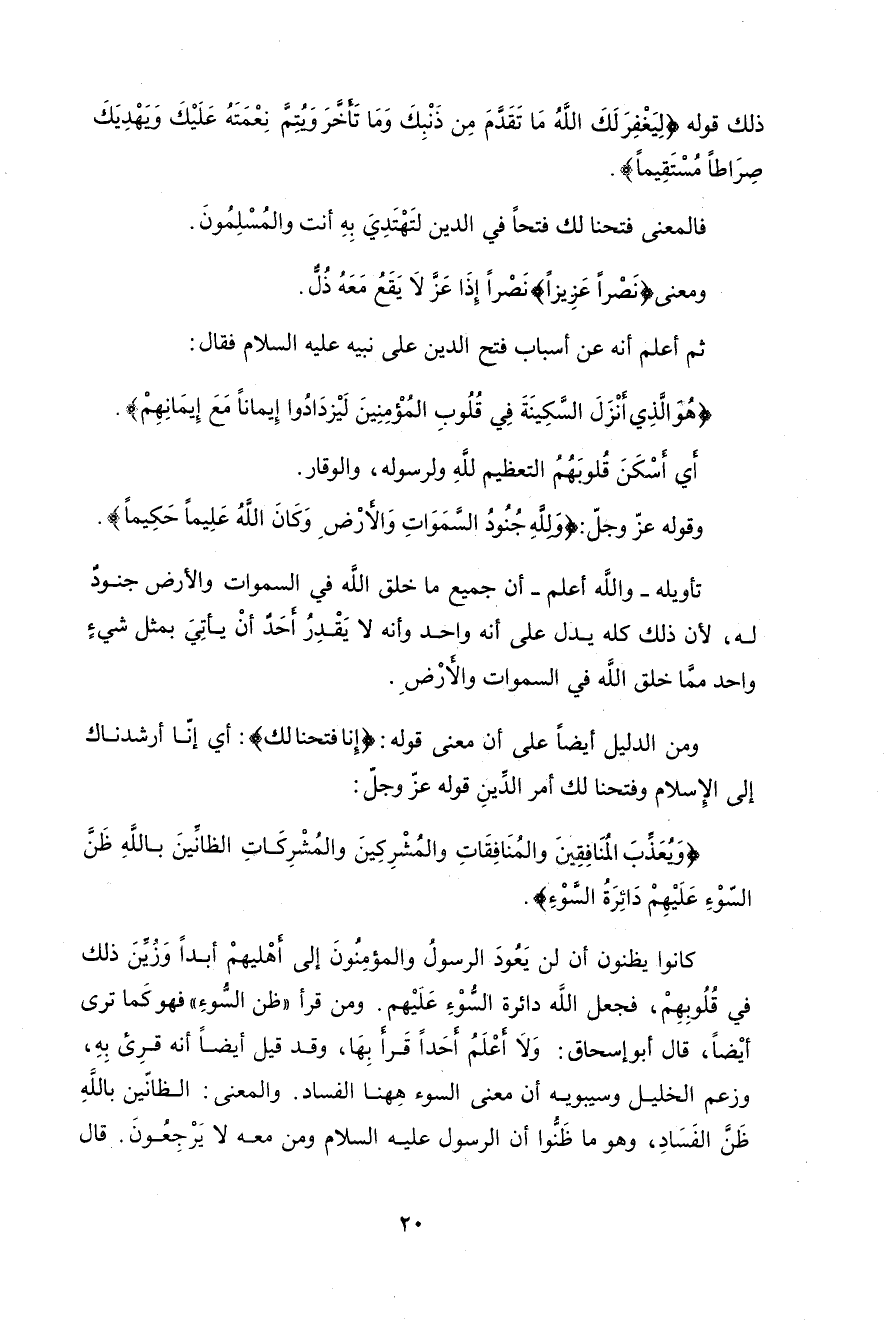 ذلك قوله (لِيَغْفِرَ لَكَ اللَّهُ مَا تَقَدَّمَ مِنْ ذَنْبِكَ وَمَا تَأَخَّرَ وَيُتِمَّ نِعْمَتَهُ عَلَيْكَ وَيَهْدِيَكَ صِرَاطًا مُسْتَقِيمًا (2)