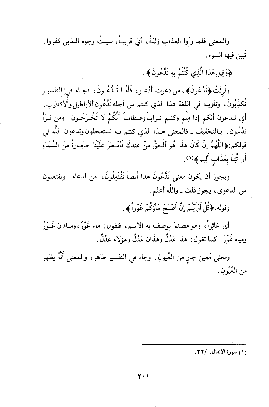 وقوله: (قُلْ أَرَأَيْتُمْ إِنْ أَصْبَحَ مَاؤُكُمْ غَوْرًا فَمَنْ يَأْتِيكُمْ بِمَاءٍ مَعِينٍ (30)