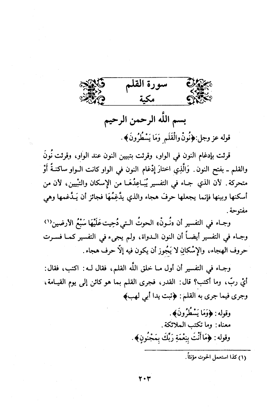 قوله عزَّ وجلَّ: (ن وَالْقَلَمِ وَمَا يَسْطُرُونَ (1)