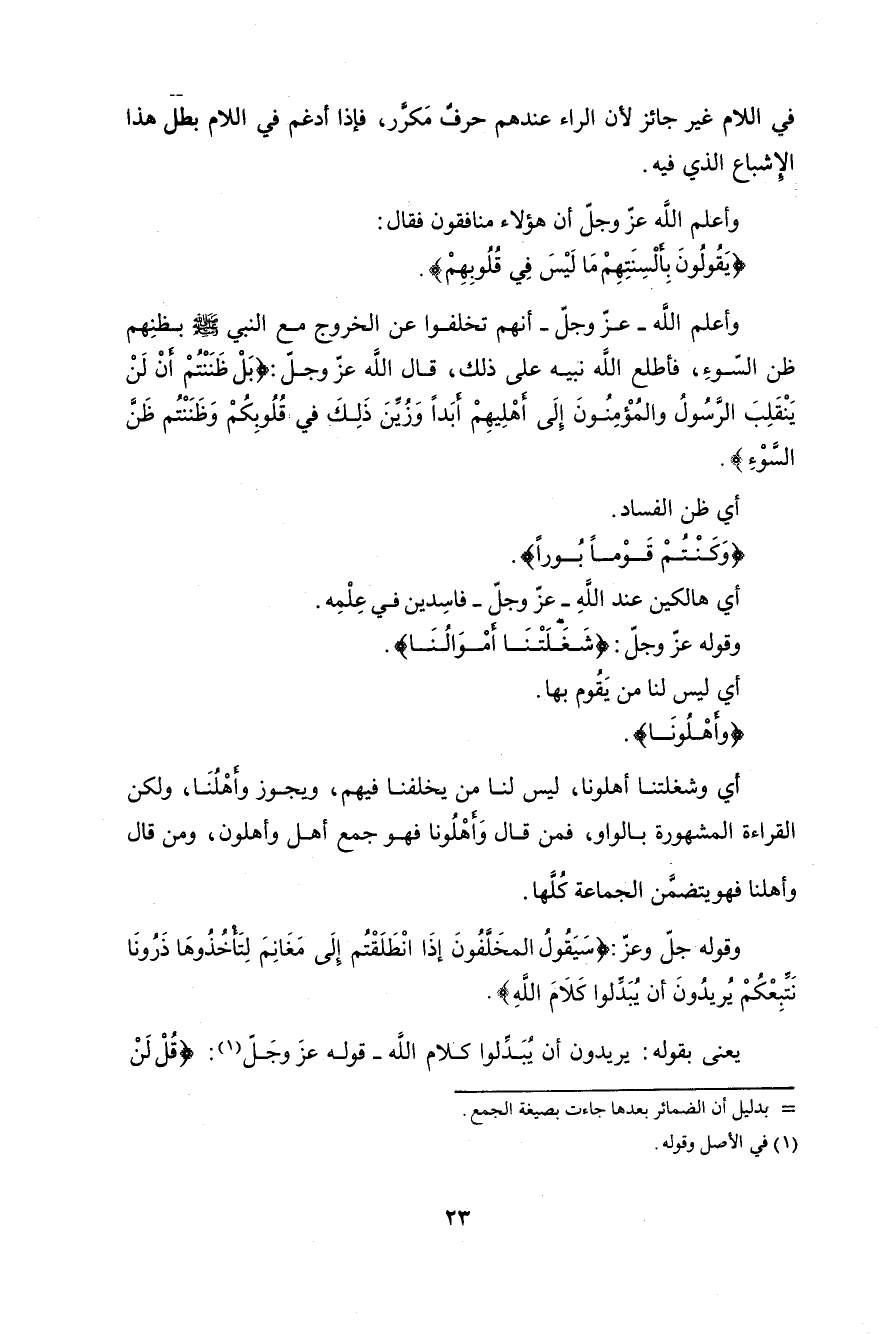 وأعلم اللَّه - عزَّ وجلَّ - أنهم تخلفوا عن الخروج مع النبي - صلى الله عليه وسلم - بظنِهم ظن السَّوءِ، فأطلع الله نبيه على ذلك، قال اللَّه عزَّ وجلَّ: (بَلْ ظَنَنْتُمْ أَنْ لَنْ يَنْقَلِبَ الرَّسُولُ وَالْمُؤْمِنُونَ إِلَى أَهْلِيهِمْ أَبَدًا وَزُيِّنَ ذَلِكَ فِي قُلُوبِكُمْ وَظَنَنْتُمْ ظَنَّ السَّوْءِ وَكُنْتُمْ قَوْمًا بُورًا (12)