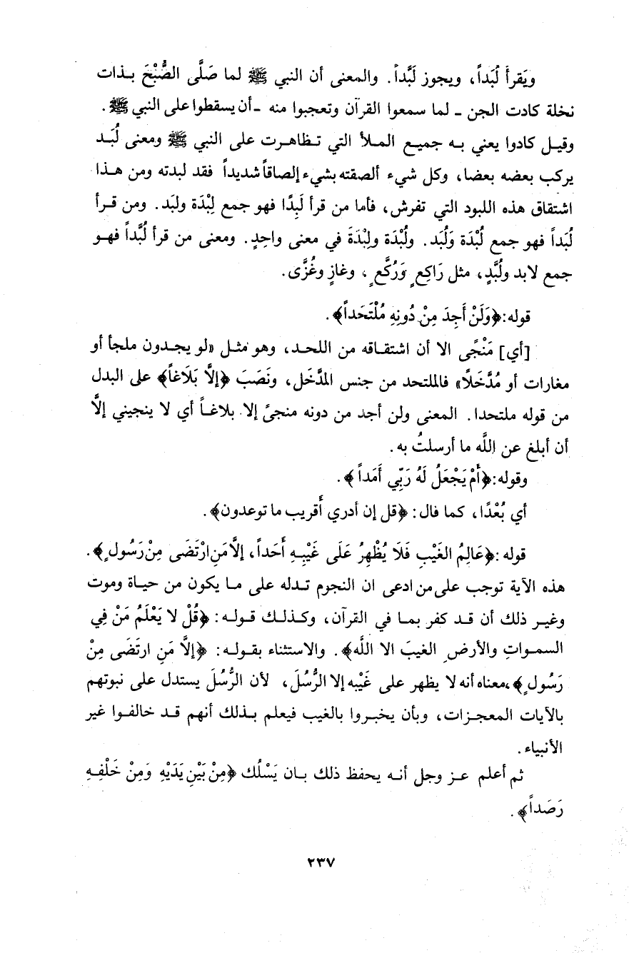 ومعنى من قرأ (لُبَّداً) فهو جمع لابد ولُبدٍ، مثل رَاكِع وَرُكَّعٍ وغازٍ وغُزًّى (1).