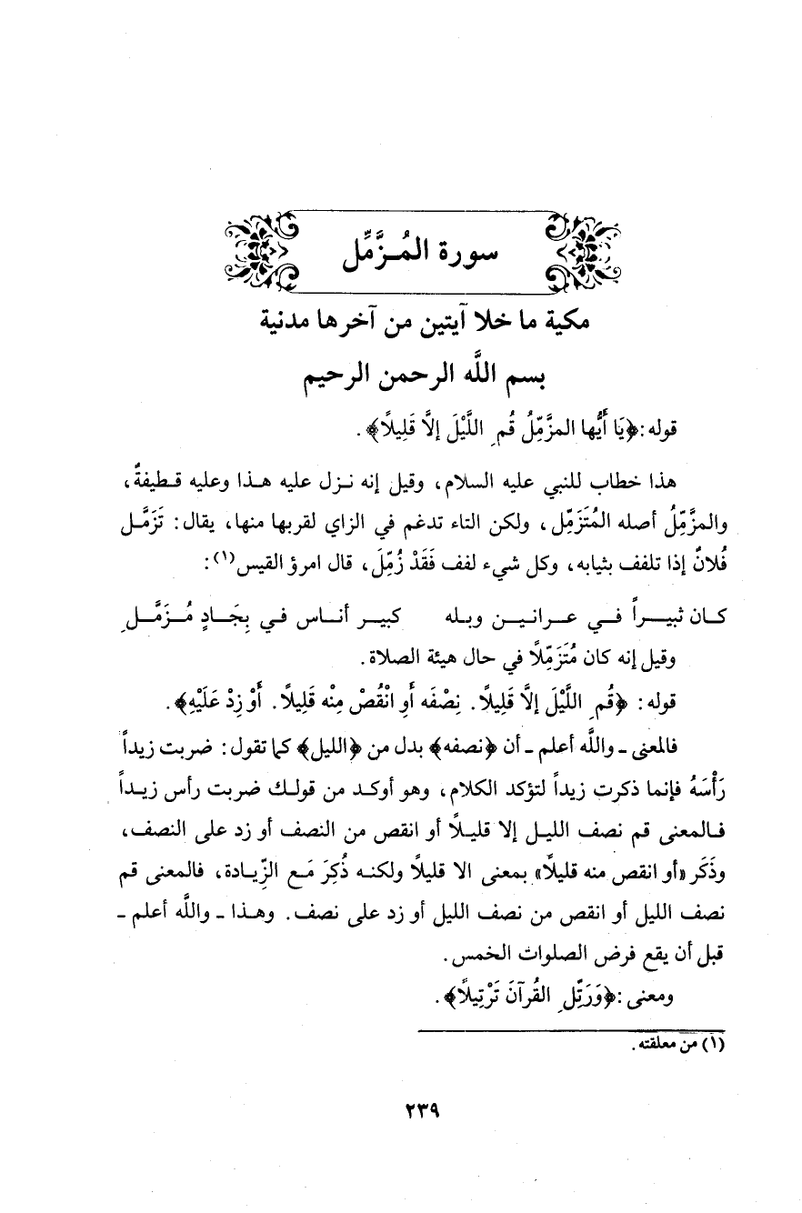 قوله: (يَا أَيُّهَا الْمُزَّمِّلُ (1) قُمِ اللَّيْلَ إِلَّا قَلِيلًا (2)