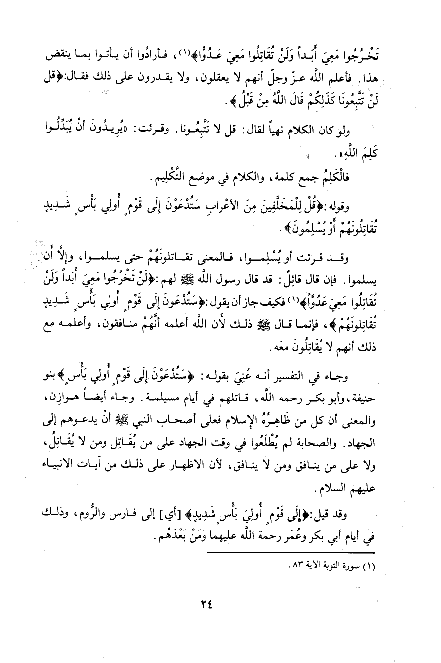 (لَنْ تَخْرُجُوا مَعِيَ أَبَدًا وَلَنْ تُقَاتِلُوا مَعِيَ عَدُوًّا)