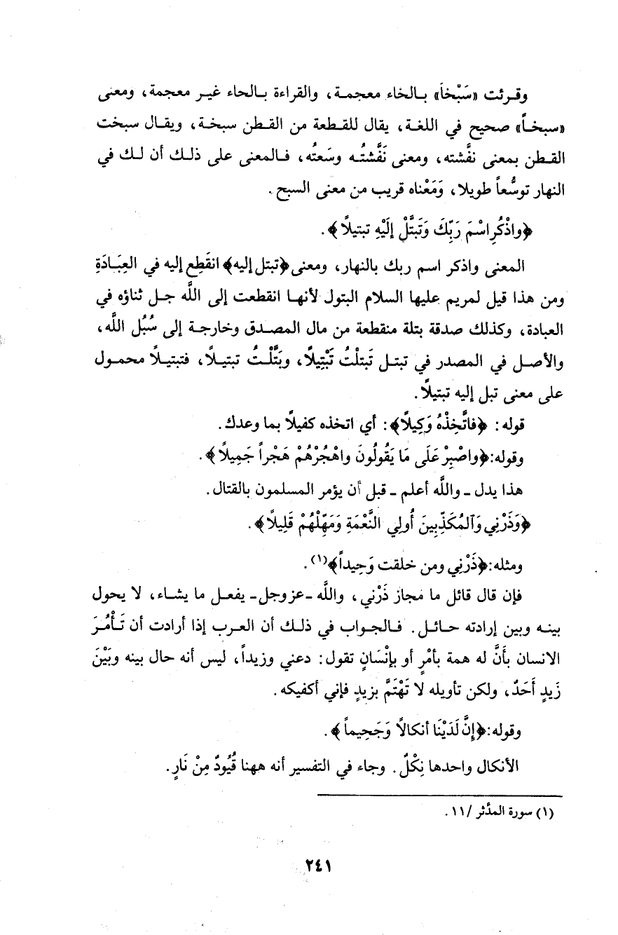 المعنى واذكر اسم ربك بالنهار، ومعنى (وَتَبَتَّلْ إِلَيْهِ) انقَطِعِ إليه في العِبَادَةِ
