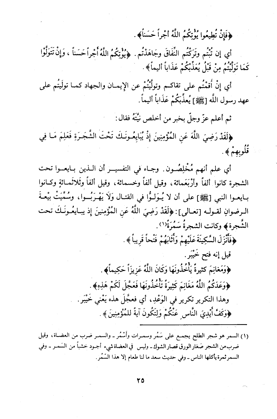 (لَقَدْ رَضِيَ اللَّهُ عَنِ الْمُؤْمِنِينَ إِذْ يُبَايِعُونَكَ تَحْتَ الشَّجَرَةِ فَعَلِمَ مَا فِي قُلُوبِهِمْ فَأَنْزَلَ السَّكِينَةَ عَلَيْهِمْ وَأَثَابَهُمْ فَتْحًا قَرِيبًا (18)