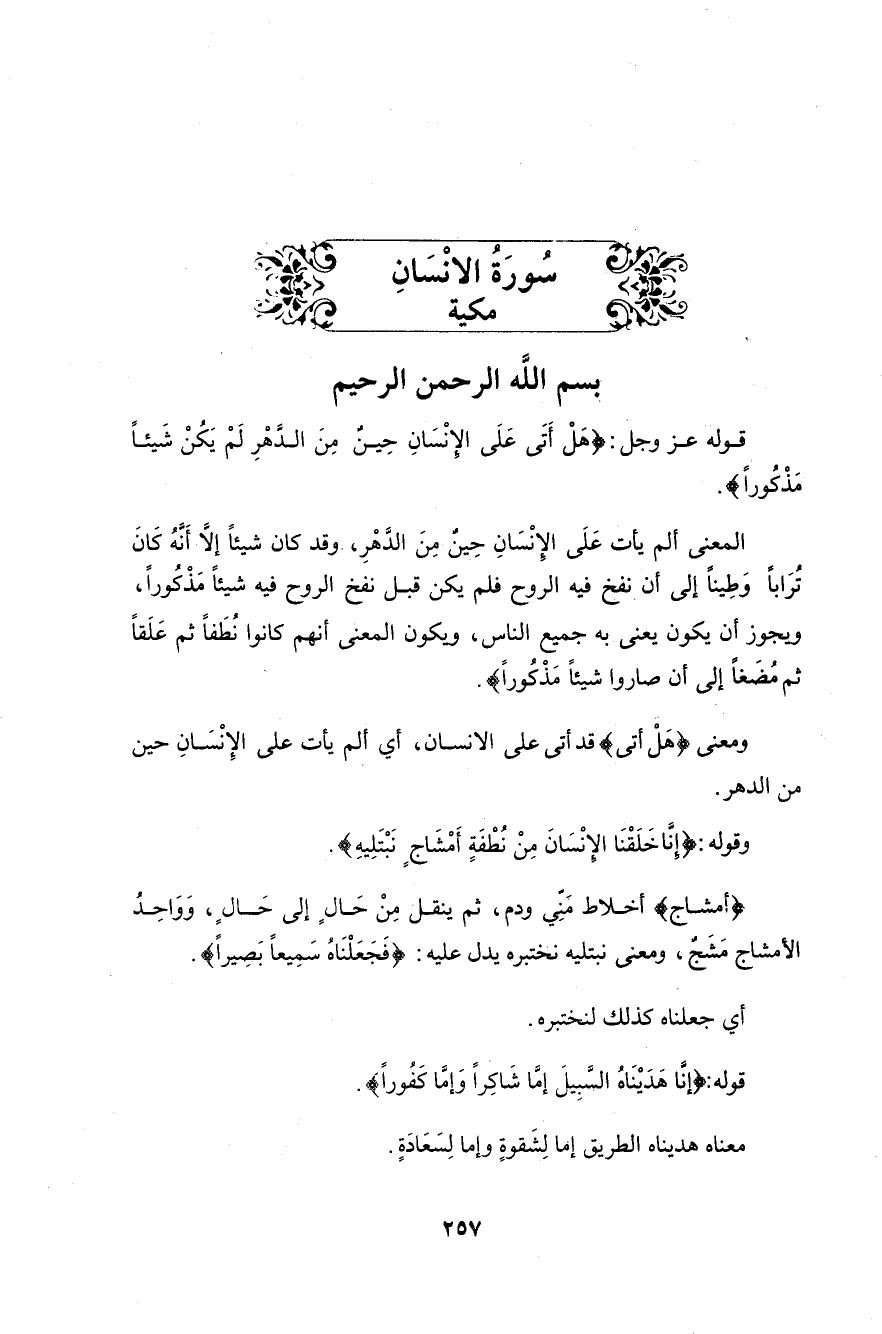 قوله عزَّ وجلَّ: (هَلْ أَتَى عَلَى الْإِنْسَانِ حِينٌ مِنَ الدَّهْرِ لَمْ يَكُنْ شَيْئًا مَذْكُورًا (1)