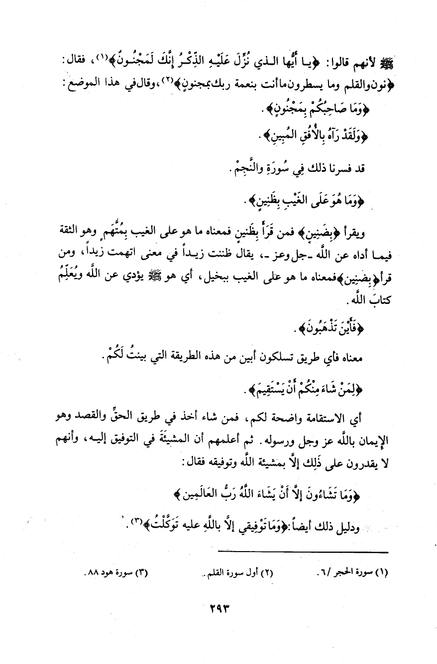 فقال: (ن وَالْقَلَمِ وَمَا يَسْطُرُونَ (1) مَا أَنْتَ بِنِعْمَةِ رَبِّكَ بِمَجْنُونٍ (2).