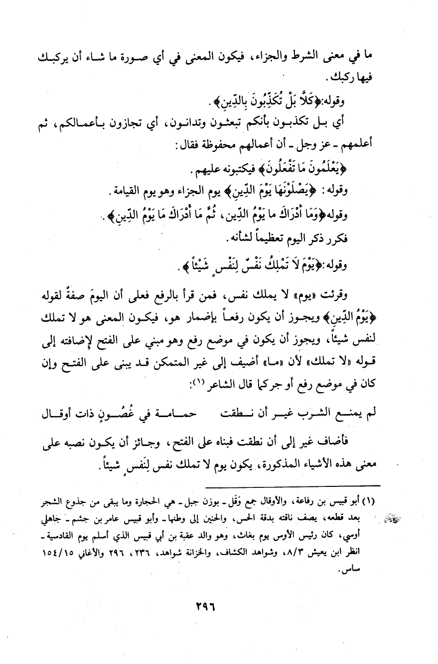فمن قرأ بالرفع فعلى أن اليومَ صفةٌ لقوله (يَوْمُ الدِّينِ)