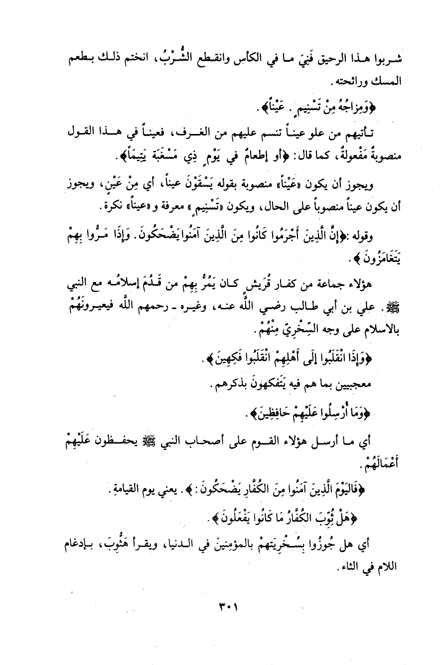 وقوله: (إِنَّ الَّذِينَ أَجْرَمُوا كَانُوا مِنَ الَّذِينَ آمَنُوا يَضْحَكُونَ (29) وَإِذَا مَرُّوا بِهِمْ يَتَغَامَزُونَ (30)