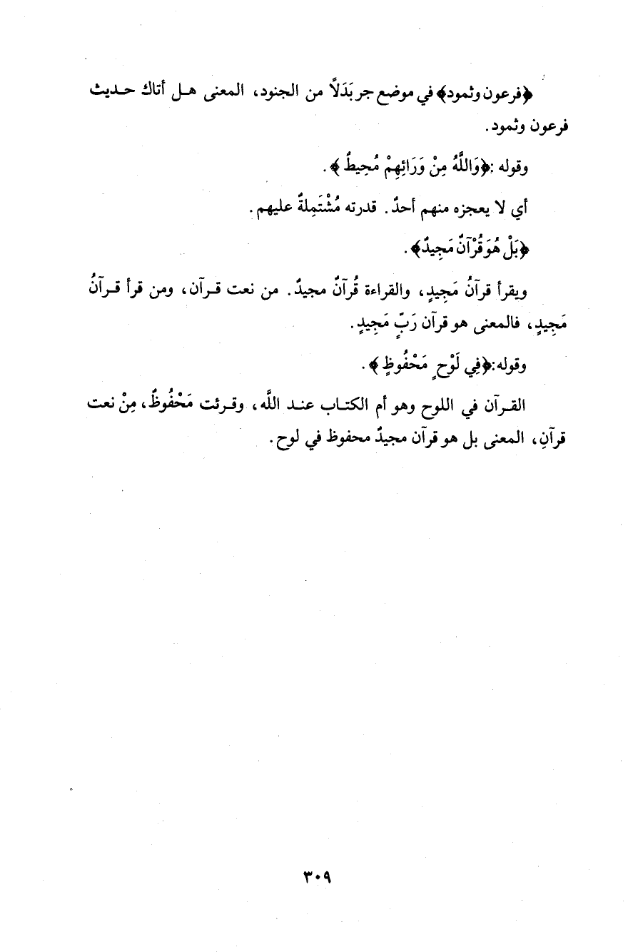 المعنى بَلْ هُوَ قُرْآنٌ مَجِيدٌ محفوظٌ في لوح.