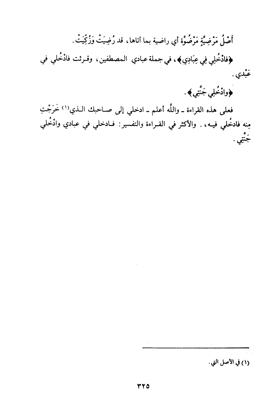 والأكثر في القراءة والتفسير: (فَادْخُلِي فِي عِبَادِي (29) وَادْخُلِي جَنَّتِي (30).