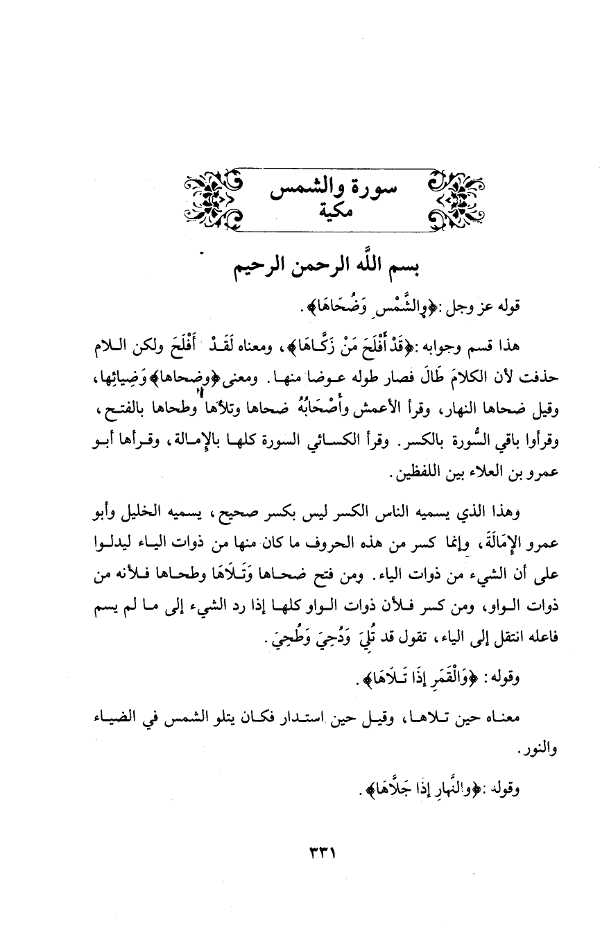 قوله عزَّ وجلَّ: (وَالشَّمْسِ وَضُحَاهَا (1)