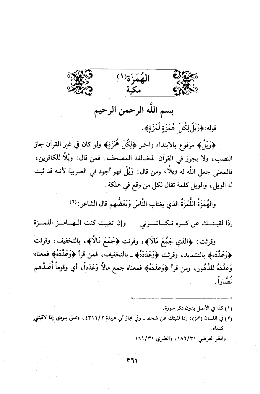 قوله: (وَيْلٌ لِكُلِّ هُمَزَةٍ لُمَزَةٍ (1)