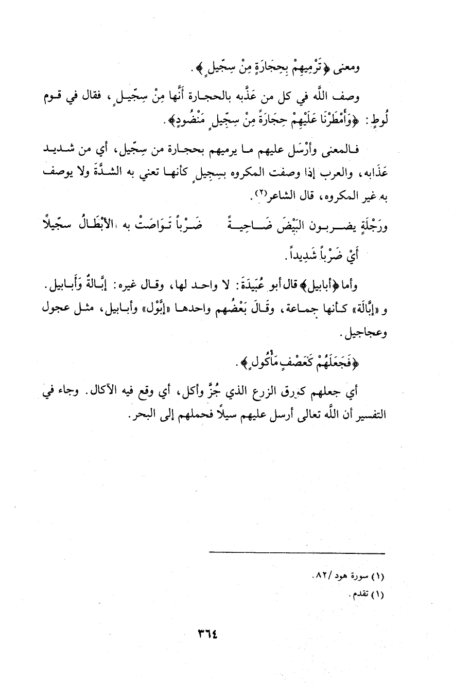 وصف اللَّه في كل من عَذَبه بالحجارة أَنَها مِنْ سِجِّيلٍ، فقال في قوم