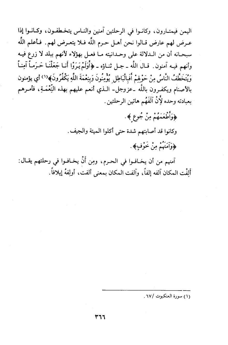 قال اللَّه - جل ثناؤه - (أَوَلَمْ يَرَوْا أَنَّا جَعَلْنَا حَرَمًا آمِنًا وَيُتَخَطَّفُ النَّاسُ مِنْ حَوْلِهِمْ أَفَبِالْبَاطِلِ يُؤْمِنُونَ وَبِنِعْمَةِ اللَّهِ يَكْفُرُونَ (67).