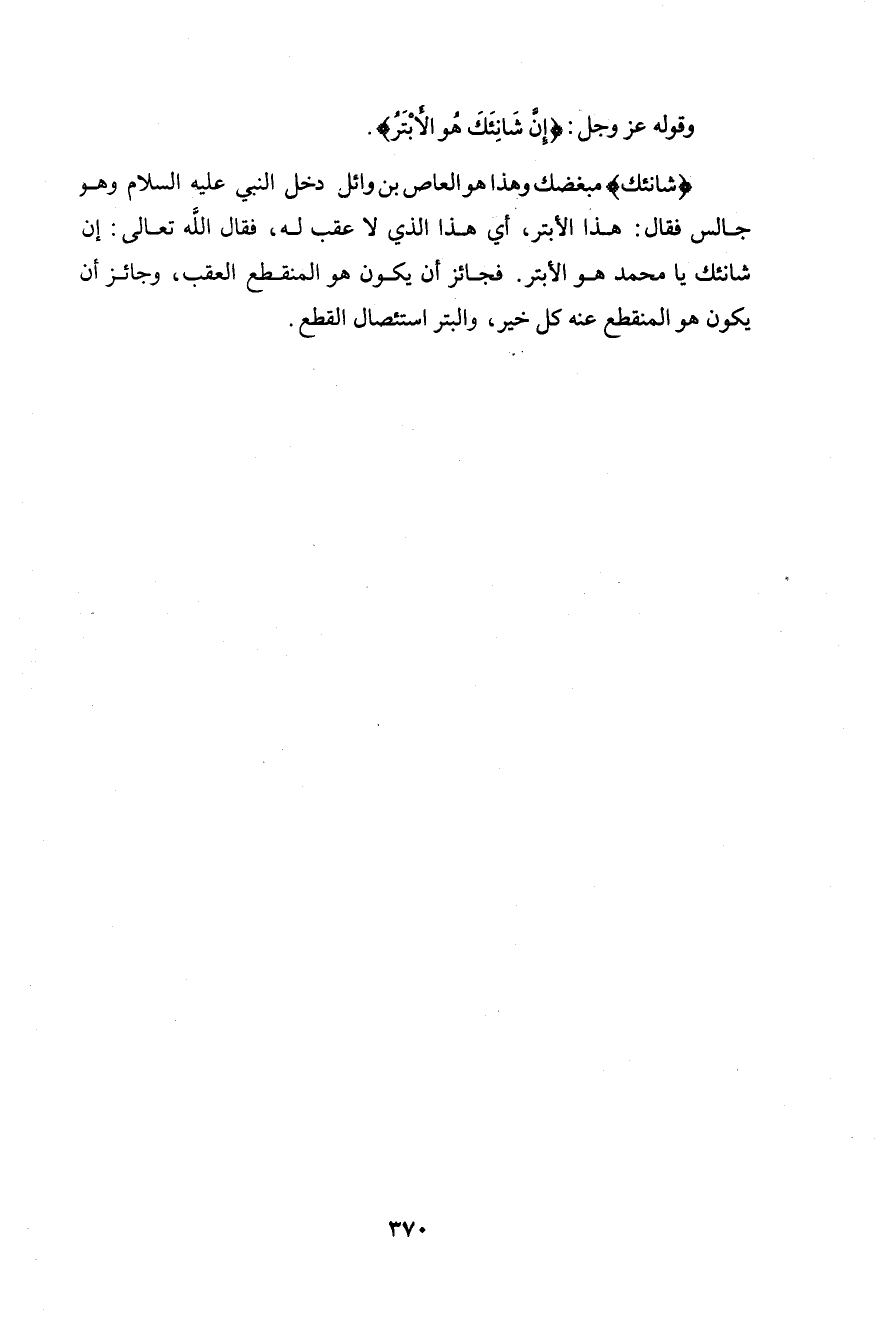 وقوله عزَّ وجلَّ: (إِنَّ شَانِئَكَ هُوَ الْأَبْتَرُ (3)