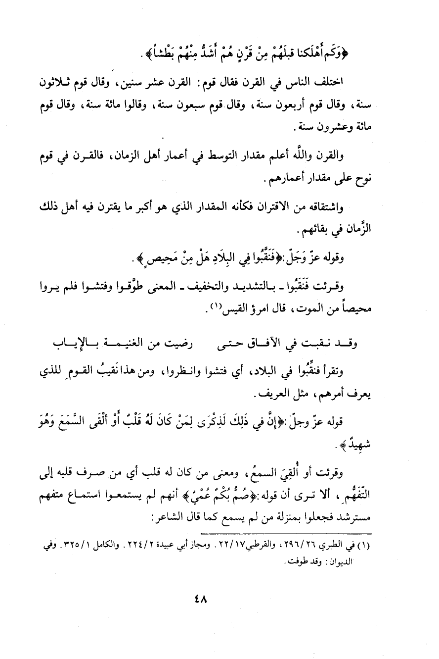 (وَكَمْ أَهْلَكْنَا قَبْلَهُمْ مِنْ قَرْنٍ هُمْ أَشَدُّ مِنْهُمْ بَطْشًا فَنَقَّبُوا فِي الْبِلَادِ هَلْ مِنْ مَحِيصٍ (36)