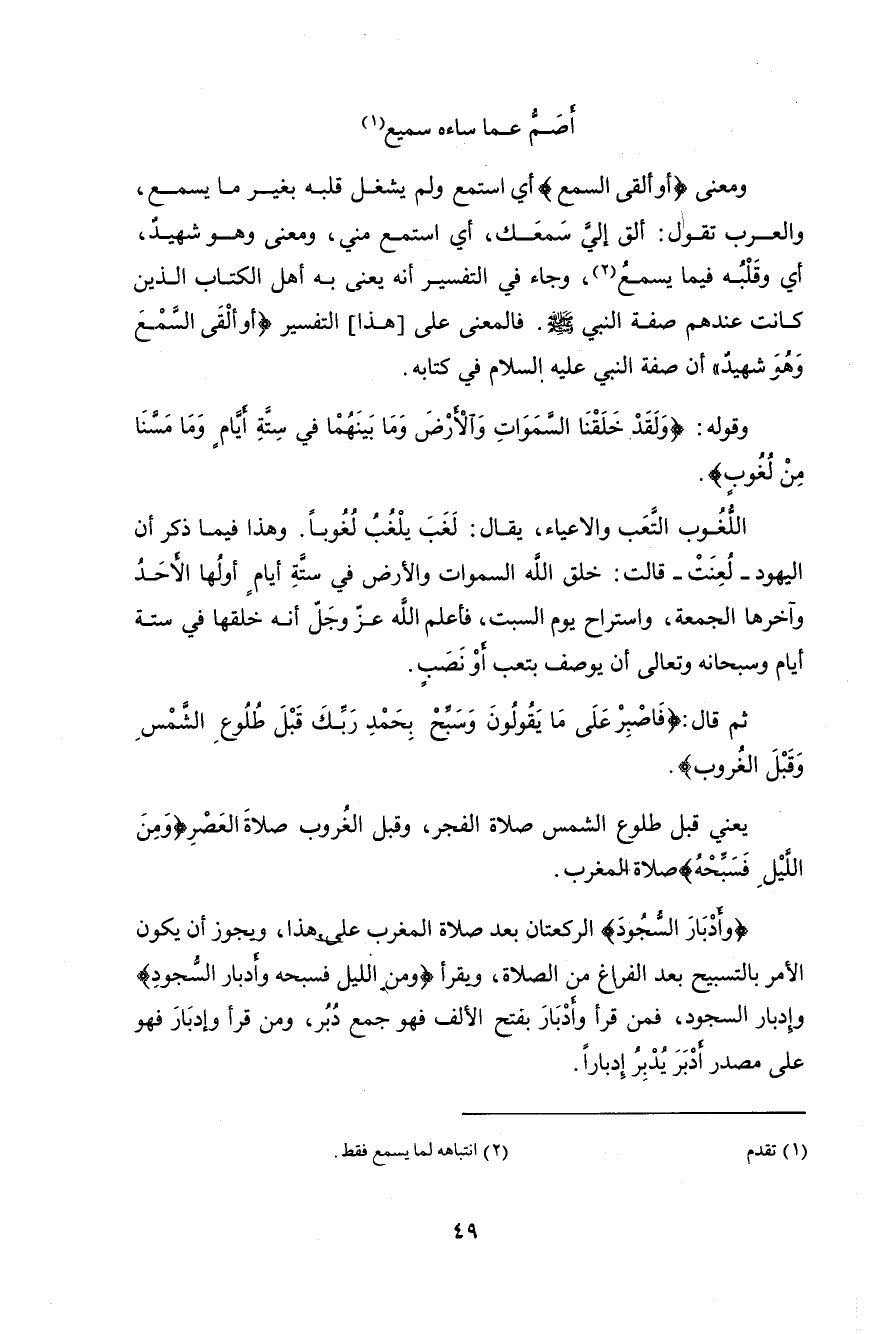 وقوله: (وَلَقَدْ خَلَقْنَا السَّمَاوَاتِ وَالْأَرْضَ وَمَا بَيْنَهُمَا فِي سِتَّةِ أَيَّامٍ وَمَا مَسَّنَا مِنْ لُغُوبٍ (38)
