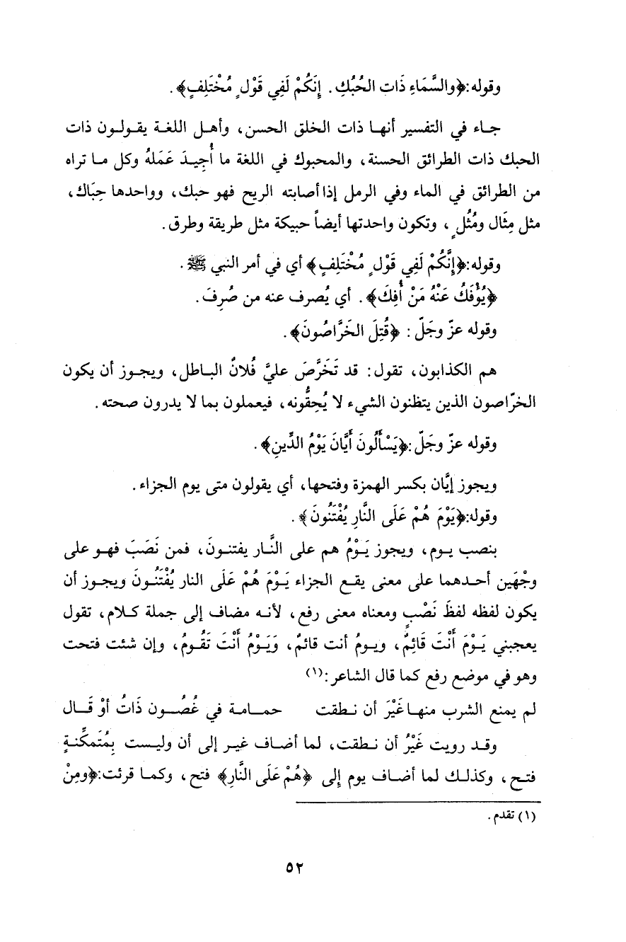 وقوله: (وَالسَّمَاءِ ذَاتِ الْحُبُكِ (7) إِنَّكُمْ لَفِي قَوْلٍ مُخْتَلِفٍ (8)