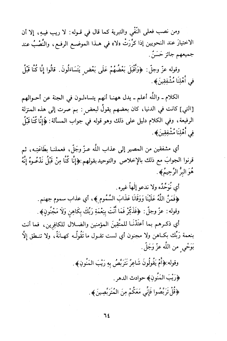 وقوله عزَّ وجلَّ: (وَأَقْبَلَ بَعْضُهُمْ عَلَى بَعْضٍ يَتَسَاءَلُونَ (25) قَالُوا إِنَّا كُنَّا قَبْلُ فِي أَهْلِنَا مُشْفِقِينَ (26)