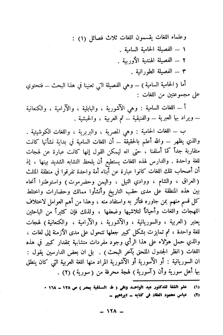 أ- اللغات السامية: وهي الآشورية، والبابلية، والآرامية، والكنعانية - ويراد بها العبرية - والفنيقية - ثم العربية، والحبشية.