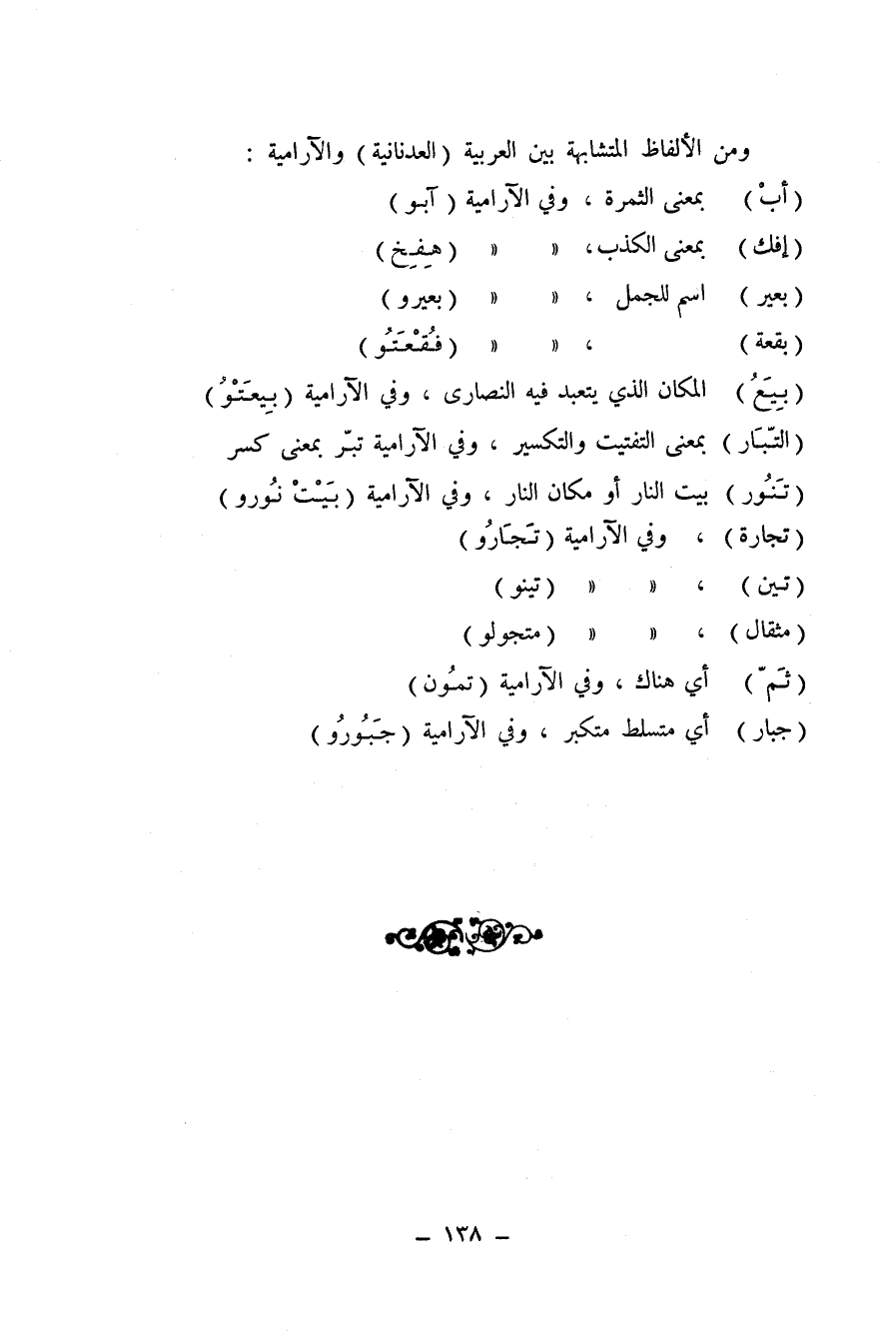 ومن الألفاظ المتشابهة بيت العربية (العدنانية) والآرامية: