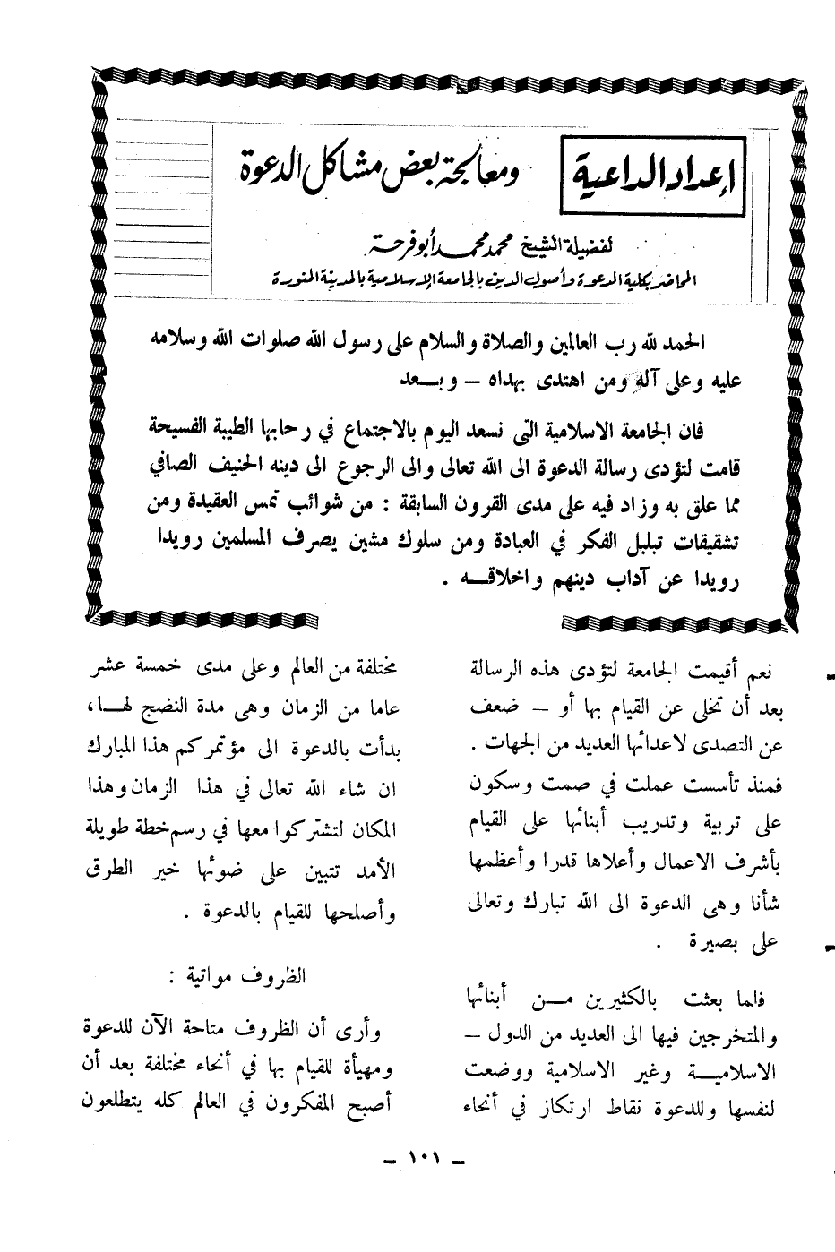 لفضيلة الشيخ محمد محمد أبو فرحة المحاضر بكلية الدعوة وأصول الدين بالجامعة الإسلامية بالمدينة المنورة