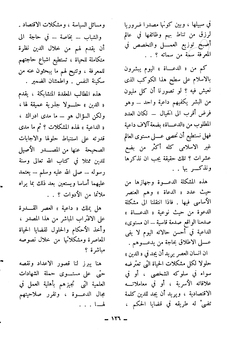 هذه المطالب المعقدة المتشابكة، يقدم ((الدين)) حلولا جذرية عميقة لها، ولكن السؤال هو ما مدى ادراك ((الداعية)) لهذه المشكلات؟ ثم ما مدى قدرته على استنباط حلولها والإجابات الصحيحة عنها من المصدر الأصيل للدين ممثلا في كتاب الله تعالى وسنة رسوله صلى الله عليه وسلم يعتمد عليهما أساسا ويستعين بعد ذلك بما يراه ملائما من الأدوات؟..