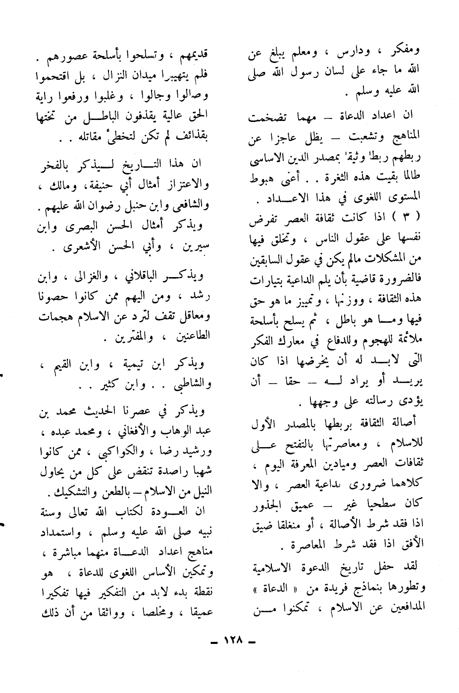 إن هذا التاريخ ليذكر بالفخر والاعتزاز أمثال أبي حنيفة، ومالك، والشافعي، وابن حنبل رضوان الله عليهم. ويذر أمثال الحسن البصري وابن سيرين وأبي الحسن الأشعري. ويذكر الباقلاني، والغزالي، وابن رشد، ومن إليهم ممن كانوا حصونا ومعاقل تقف لترد عن الإسلام هجمات الطاعنين والمفترين. ويذكر ابن تيمية، وابن القيم، والشاطبي.. وابن كثير..