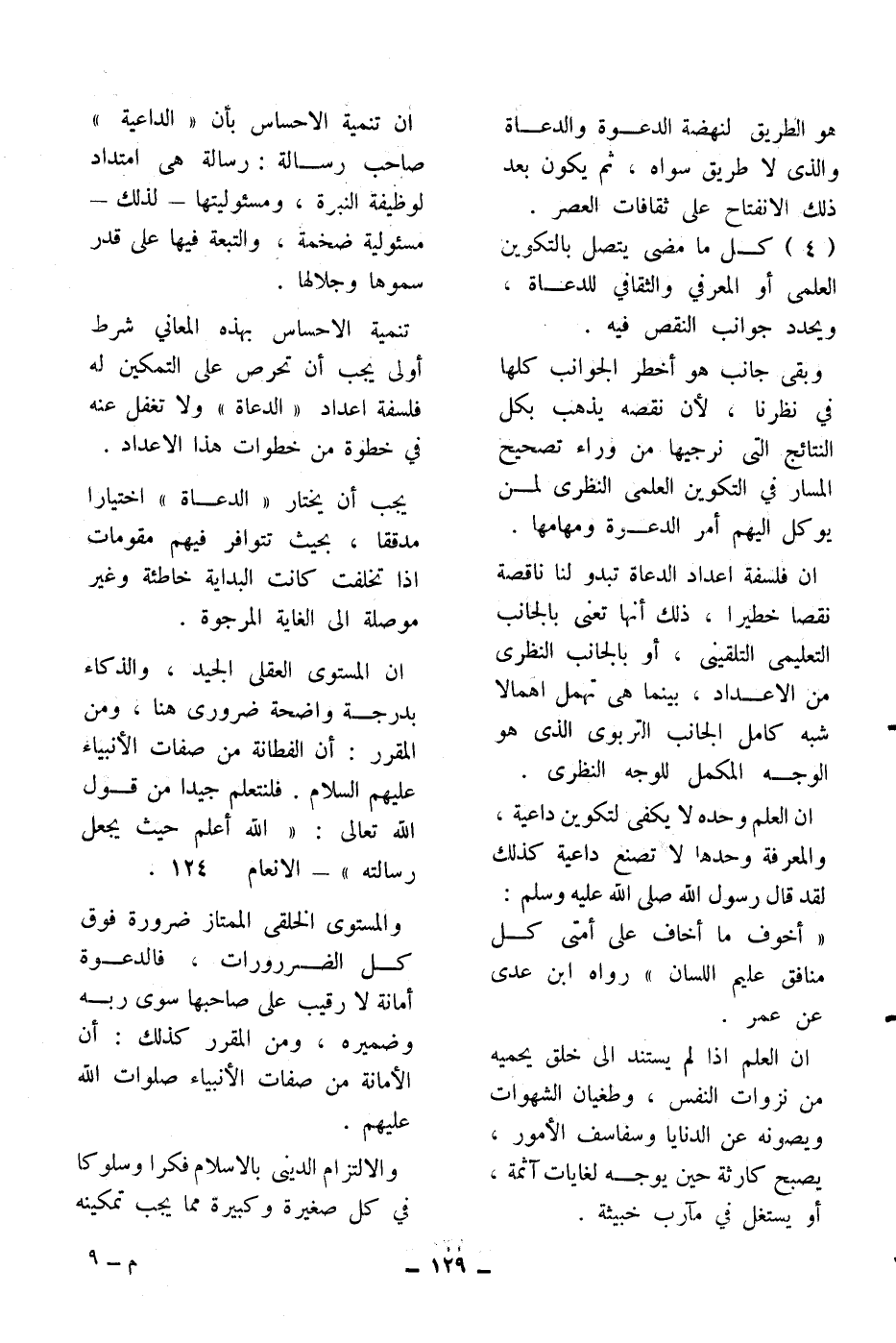(4) كل ما مضى يتصل بالتكوين العلمي أو المعرفي والثقافي للدعاة، ويحدد جوانب النقص فيه.