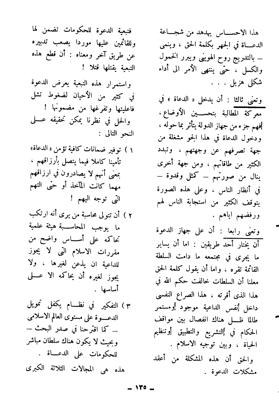 1) توفير ضمانات كافية تؤمن ((الدعاة)) تأمينا كاملا فيما يتصل بأرزاقهم، بمعنى أنهم لا يصادرون في أرزاقهم مهما كانت المآخذ أو حتى التهم التي توجه إليهم!