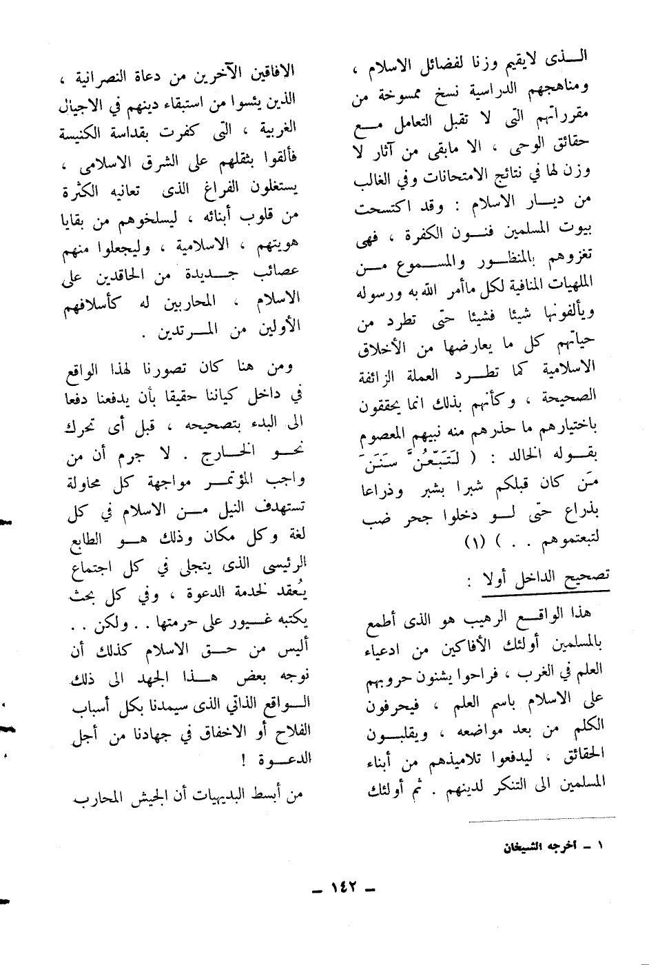 هذا الواقع الرهيب هو الذي أطمع بالمسلمين أولئك الأفاكين من أدعياء العلم في الغرب، فراحوا يشنون حروبهم على الإسلام بإسم العلم، فيحرفون الكلم من بعد مواضعه، ويقلبون الحقائق، ليدفعوا تلاميذهم من أبناء المسلمين إلى التنكر لدينهم. ثم أولئك الأفاقين الآخرين من دعاة النصرانية، الذين يئسوا من استبقاء دينهم في الأجيال الغربية، التي كفرت بقداسة الكنيسة فألقوا بثقلهم على الشرق الإسلامي، يستغلون الفراغ الذي تعانيه الكثرة من قلوب أبنائه، ليسلخوهم من بقايا هويتهم، الإسلامية، وليجعلوا منهم عصائب جديدة من الحاقدين على الإسلام، المحاربين له كأسلافهم الأولين من المرتدين.
