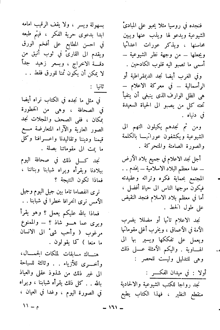 نجد رواجا للكتب الشيوعية والالحادية منقطع النظير، فهذا الكتاب يطبع بسهولة ويسر، ولا يقف الرقيب أمامه أبدا بدعوى حرية الفكر، فيتم طبعه في أحسن المطابع على أفخم الورق ويقدم إلى القارئ في ثوب أنيق من دقة الاخراج، وبسعر زهيد جدا لا يمكن أن يكون ثمنا للورق فقط..