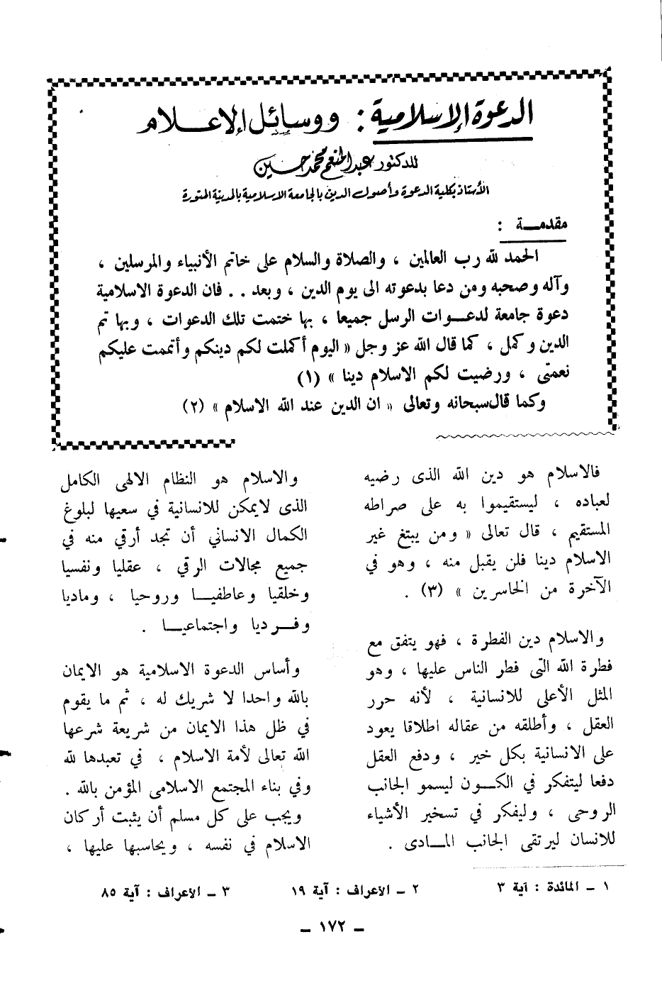 للدكتور عبد المنعم محمد حسين الإستاذ بكلية الدعوة وأصول الدين بالجامعة الإسلامية بالمدينة المنورة
