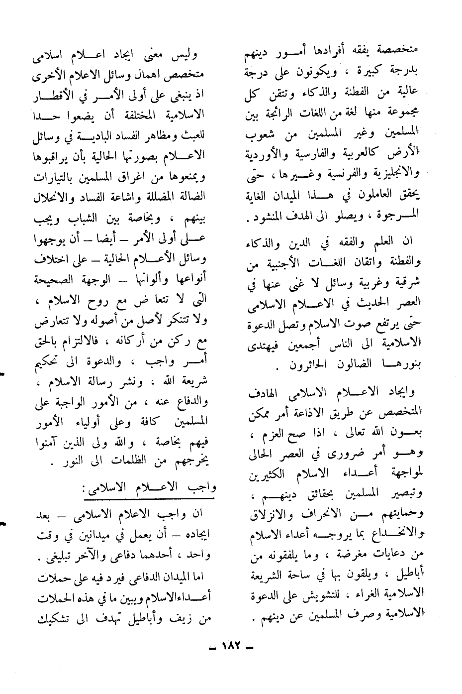 إن العلم والفقه في الدين والذكاء والفطنة واتقان اللغات الأجنبية من شرقية وغربية وسائل لا غنى عنها في العصر الحديث في الإعلام الإسلامي حتى يرتفع صوت الإسلام وتصل الدعوة الإسلامية إلى الناس أجمعين فيهتدي بنورها الضالون الحائرون.