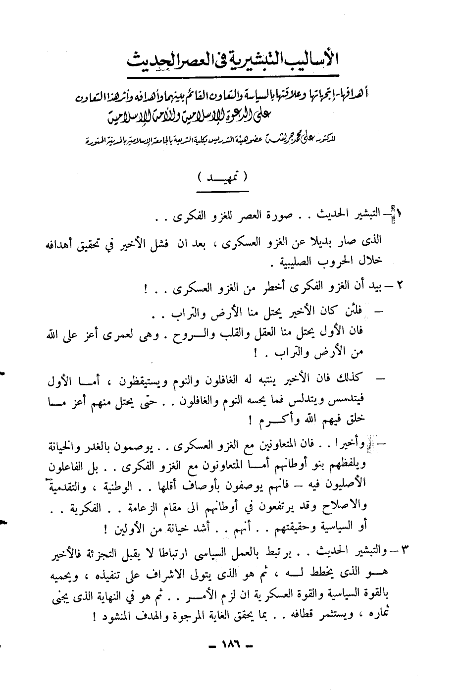 للدكتور علي محمد جريشة عضو هيئة التدريس بكلية الشريعة بالجامعة الإسلامية بالمدينة المنورة
