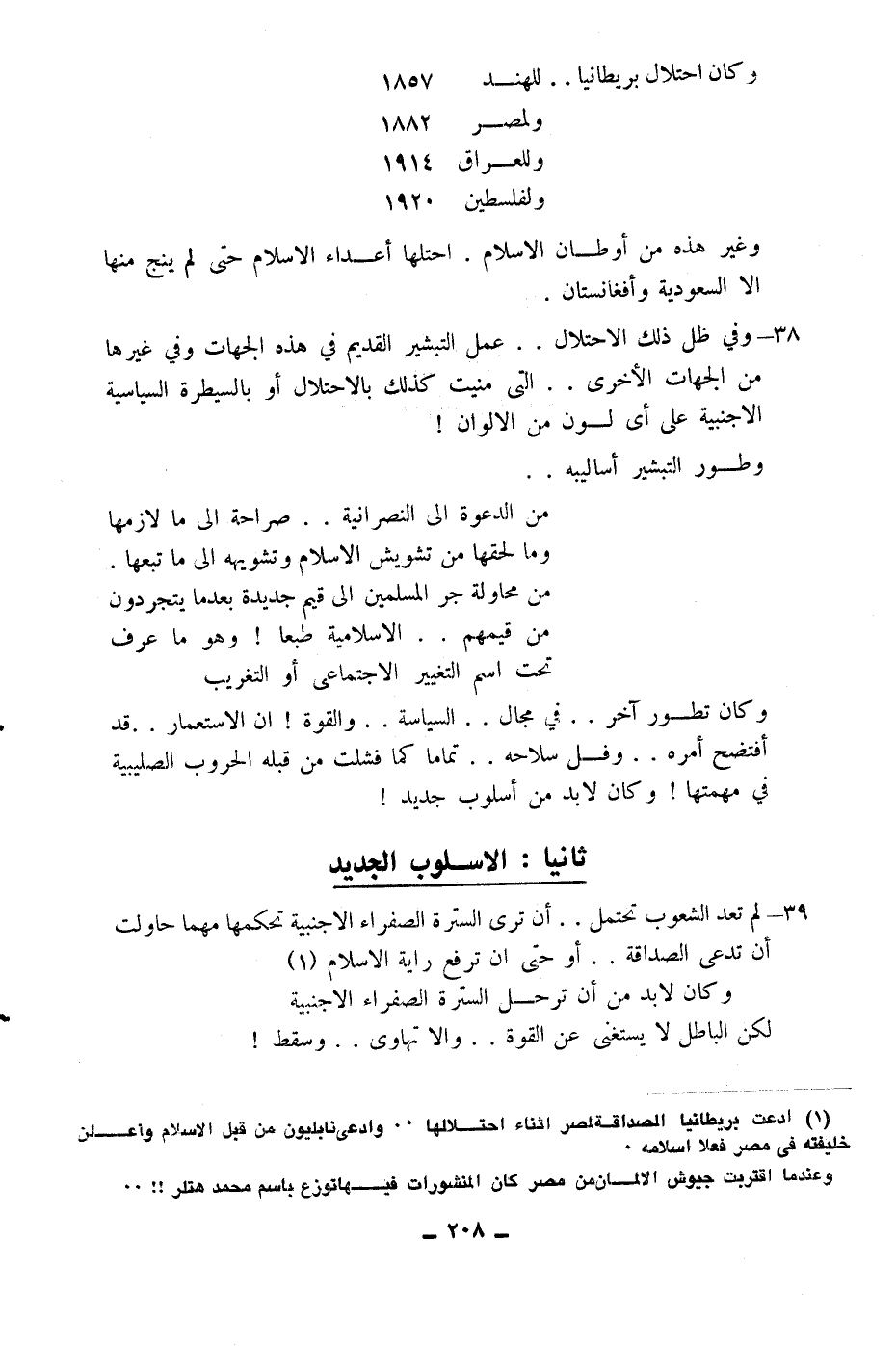 38ـ وفي ظل ذلك الاحتلال.. عمل التبشير لقديم في هذه الجهات وفي غيرها من الجهات الأخرى.. التي منيت كذلك بالاحتلال أوبالسيطرة السياسية الأجنبية على أي لون من الألوان!