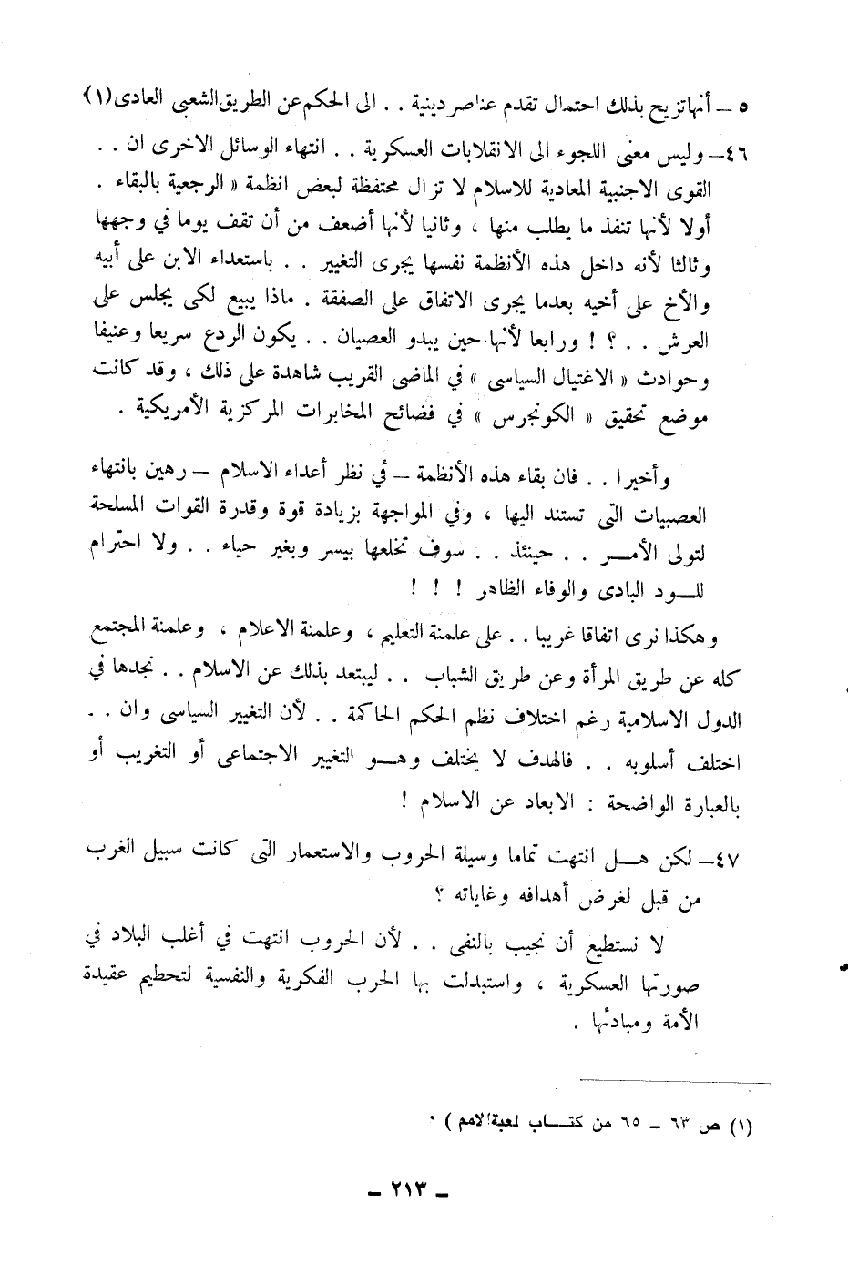 46ـ وليس معنى اللجوء إلى الانقلابات العسكرية.. انتهاء الوسائل الأخرى إن.. القوى الأجنبية المعادية للإسلام لاتزال محتفظة لبعض أنظمة الرجعية بالبقاء.