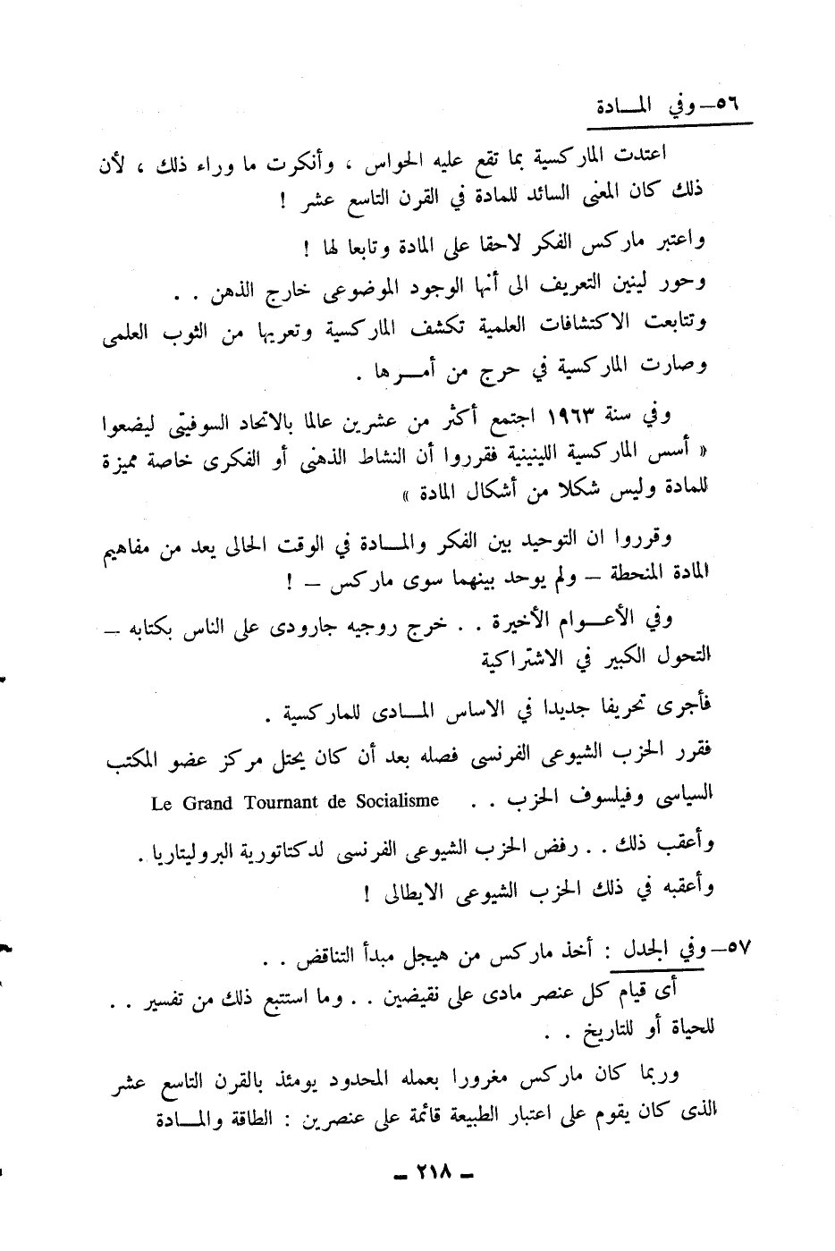 57ـ وفي الجدل: أخذ ماركس من هيجل مبدأ التناقض..