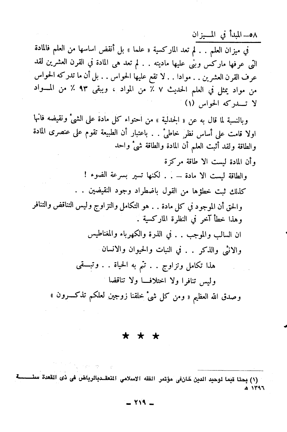 1 بحثا قيما لوحيد الدين خان في مؤتمر الفقه الإسلامي المنعقد بالرياض في ذي القعدة سنة 1396هـ.